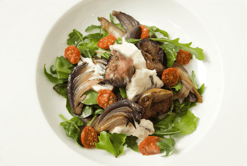 Salad with sun-dried tomatoes, figs and caramelized onions