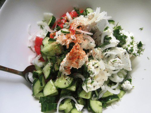 Vegetable salad with Philadelphia cheese