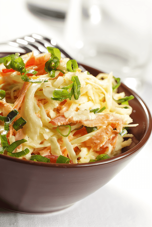 Southern-style cabbage salad is a classic American side dish that perfectly complements barbecue dishes. Its roots trace back to the southern states of the USA, where fresh vegetables, a light tanginess, and gentle sweetness create a harmonious flavor. Cabbage adds crunchiness, carrots add sweetness, and onions provide a savory note. The mayonnaise-based dressing with balsamic vinegar and sugar coats the ingredients, creating a rich and slightly creamy taste. This salad pairs excellently with meat dishes, especially ribs or grilled chicken breast. It can be served chilled for a refreshing effect. Due to its simplicity in preparation and availability of ingredients, it has become an indispensable part of American cuisine, bringing generations together at family dinners and picnics.