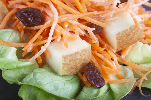Carrot salad with raisins and apples