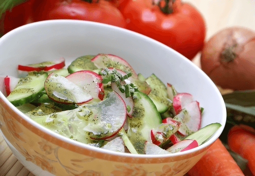 Cucumber salad with radish, mint and feta