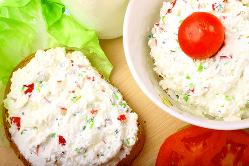 Add cottage cheese, finely chopped bell pepper, and onion. Salt and pepper to taste.