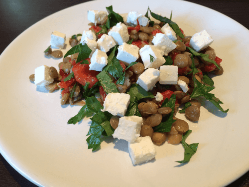 This warm salad of lentils and roasted red peppers is a true embodiment of Mediterranean gastronomy. Its roots trace back to Greek cuisine, where simple yet flavorful ingredients create an amazing harmony. Tender lentils soak up the aromas of bay leaves and thyme, while sweet roasted red pepper adds juiciness and a hint of smokiness to the salad. The dressing made from olive oil, red wine vinegar, and Dijon mustard adds a vibrant spiciness, making the flavor rich and multifaceted. Feta cheese brings a creamy note, while fresh parsley finishes the dish with lightness and freshness. This salad is perfect as a standalone dish or as a side to meat or fish, and toasted pita makes it even more filling and appetizing.