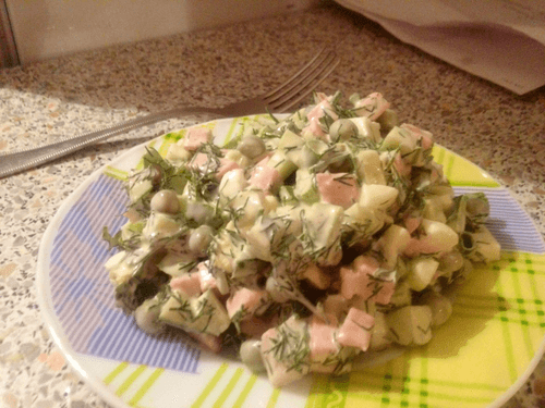 Olivier with fresh cucumbers is a modern interpretation of the classic French salad that brings a touch of sophistication to Slavic cuisine. The history of 'Olivier' dates back to the 19th century when the famous chef Lucien Olivier created his signature dishes for the Moscow restaurant 'Hermitage'. Today, this salad is a symbol of festive gatherings, and fresh cucumbers add a special lightness and refreshing crunch. The tenderness of boiled eggs, the juiciness of sausage and green peas, and the aroma of dill and parsley all harmoniously blend under a soft layer of mayonnaise. Olivier with fresh cucumbers is an ideal option for both everyday menus and festive events, highlighting the freshness of ingredients and richness of flavor.