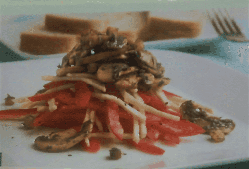 Yerevan-style mushroom salad is a harmonious blend of fresh vegetables and the rich aroma of mushrooms sautéed with bacon. This recipe has Armenian roots, where mushrooms are often used in traditional cuisine for their rich flavor and texture. Dressed with vegetable oil, the salad gains lightness, while parsley adds freshness. Crunchy sweet pepper and tender celery create a balance between sweetness and spiciness. This salad is perfect as a standalone dish or a side to meat due to its versatility. Serving it on a plate with neatly arranged layers makes it aesthetically appealing, while the combination of textures is unforgettable in every bite.