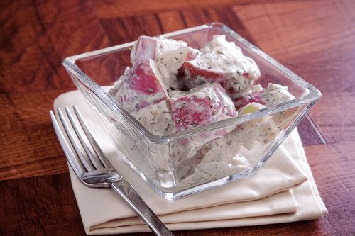 New Potato Salad with Blue Cheese, Bacon and Green Onions