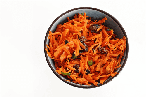 Carrot salad with mint and raisins is an elegant blend of freshness and sweetness inspired by the refined flavors of French cuisine. This simple yet sophisticated salad is a play of textures: crunchy carrots, juicy raisins, and fragrant mint create a harmonious balance of flavors. Olive oil and lemon juice add lightness and zest to the dish, highlighting its refreshing character. The French appreciate it for its ability to enliven meals by adding a touch of brightness to main courses. It pairs perfectly as a side dish with fish or light meat and also serves as a standalone dish for those seeking a healthy and tasty snack. This salad is not only delicious but also packed with vitamins, making it a great choice for summer dining.
