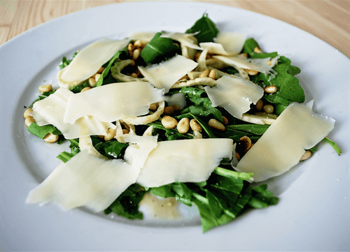 Arugula and parmesan salad is the embodiment of Italian gastronomy, where the simplicity of ingredients combines with refined taste. Crunchy spicy arugula harmoniously complements sweet fennel, while thin slices of aged parmesan add richness to the dish. Toasted pine nuts add a light nutty note, and the dressing of olive oil and balsamic vinegar ties all components together. This salad is perfect as a light appetizer or side dish to a main course, and its freshness makes it an excellent choice for summer dinners. The dish comes from Italian cuisine, where fresh products are valued over complex combinations. Each ingredient plays its role in creating a unique blend of flavors that leaves a pleasant aftertaste and a desire to try it again.