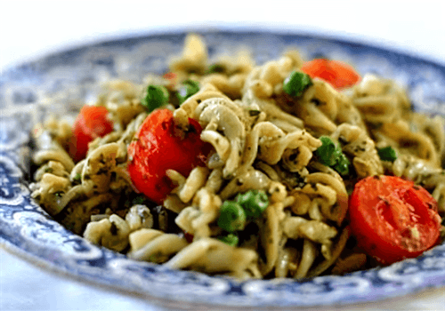 Pasta salad with pesto sauce is the quintessence of Italian cuisine, combining simplicity and sophistication. Originating in sunny Liguria, pesto—a fragrant blend of basil, garlic, pine nuts, and Parmesan crushed with olive oil—has become a symbol of freshness and flavor. In this salad, fusilli are gently enveloped in this vibrant sauce, mingling with salty olives, sweet green peas, and crunchy pine nuts. Cherry tomatoes add freshness while basil leaves complete the picture of true Mediterranean delight. This salad is perfect as a light summer lunch or an elegant dish for a friendly dinner, evoking warm memories of sea breezes and cozy streets of Italy.