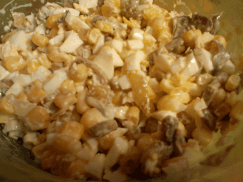 Mushroom salad with corn is a combination of simplicity and rich flavor. This recipe, inspired by Mexican cuisine, combines the tenderness of mushrooms, the sweetness of corn, and the softness of eggs into a harmonious dish. Lightly frying the mushrooms with onions brings out their aroma, while adding mayonnaise gives the salad a creamy texture. The dish is perfect for both everyday dinners and festive tables. Due to its composition, the salad is nutritious yet remains light. It can be a great addition to meat dishes or served as an independent appetizer. The simplicity of preparation makes it accessible even for novice cooks, while its taste is consistently pleasing to various gourmets.