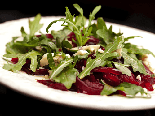 Beetroot salad with arugula, parmesan and pine nuts