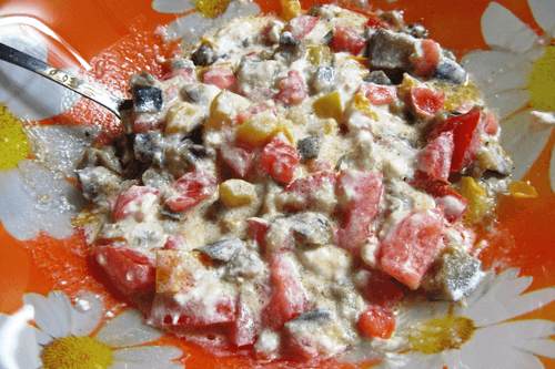 Bake eggplants and peppers under the grill or in a preheated oven at 220 degrees for 10-15 minutes.
