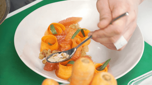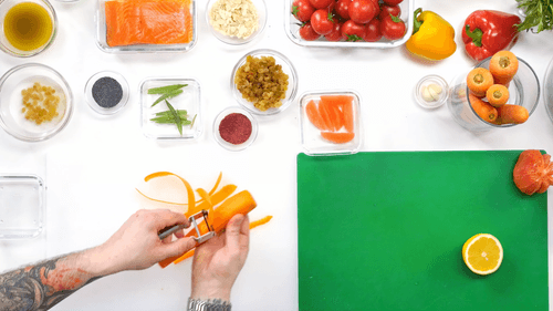 Carrot and almond salad with lightly salted salmon