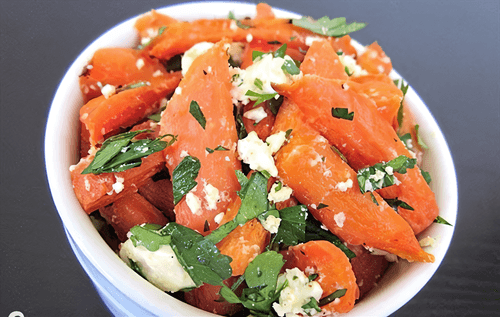 Serve the carrot salad with cheese warm.