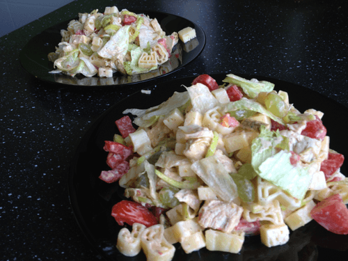 Mix mayonnaise with Caesar dressing (it's tastier, but optional) and add to the salad. Toss.