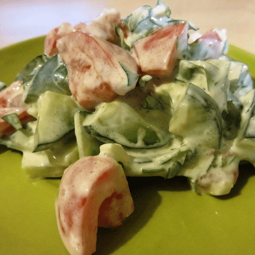 Summer vegetable salad with sour cream is the embodiment of freshness and simplicity. Its roots go back to the traditions of European cuisine, where natural products and light combinations play an important role. The salad is filled with bright colors—crunchy cucumbers, juicy tomatoes, and aromatic onions create a harmonious taste. The delicate sour cream adds softness and unites the ingredients into a single composition, highlighting the natural flavor of the vegetables. This salad is perfect for hot summer days—it refreshes, satisfies, and energizes without overloading the body. Its simplicity in preparation makes it accessible even for those who do not like to stand long at the stove. It can be served as a standalone dish or as a side to meat or fish, while the light tang of sour cream gives it a special charm.