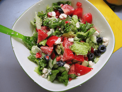 Greek salad with croutons