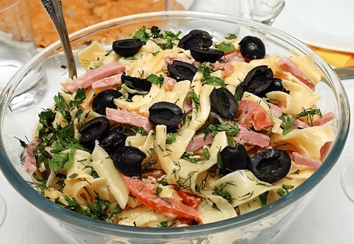Italian salad with cheese and pasta