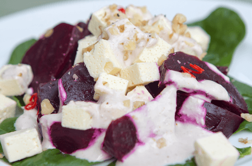 Green salad with beetroot and cheese
