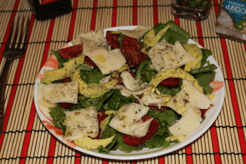 Salad with arugula, cherry tomatoes, avocado and mozzarella