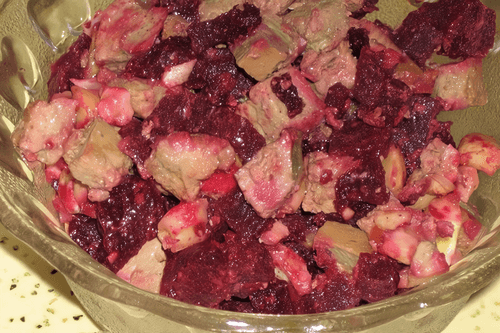 Warm beet salad with chicken liver