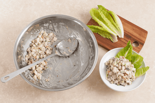 Add peas, mayonnaise, Worcestershire sauce, mustard, and mix thoroughly.
