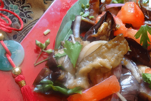 Pan-Asian warm salad with eggplants is a vibrant blend of flavors reflecting the diversity of Pan-Asian cuisine. Roasted eggplants acquire a tender texture and a slightly smoky aroma, perfectly complemented by fresh tomatoes and crunchy red onions. The sweet-sour hint of soy sauce with spicy chili paste adds depth to the dish, while sesame oil contributes a refined nutty note. Cilantro completes the composition, giving the salad freshness. The dish's history roots in traditional Asian vegetable cooking techniques combined with a modern gastronomic approach. Perfect for warm summer evenings or light lunches, this salad can be served as a standalone dish or as an accompaniment to meat or fish. The main thing is to enjoy its rich flavors right after preparation!