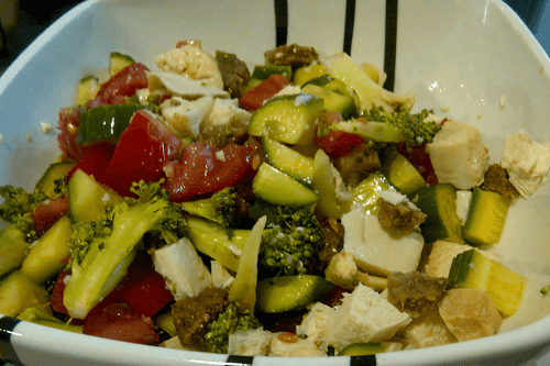 Raw food vitamin salad with tofu cheese and soy sauce