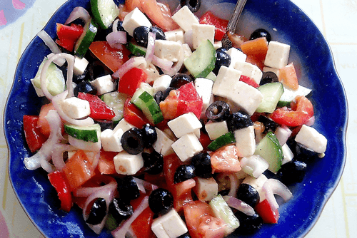 Greek salad with processed cheese
