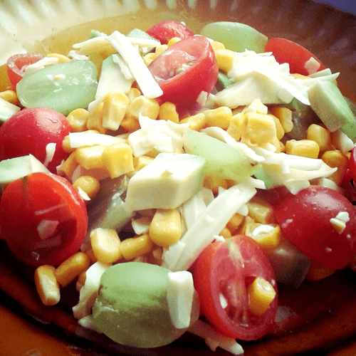 Avocado salad with cherry tomatoes and grapes is a harmony of flavors and textures, combining the creaminess of avocado, the juiciness of tomatoes, and the sweetness of grapes. This salad brings lightness and freshness, making it an ideal complement to main dishes or a standalone snack. Although the recipe is not traditional for Chinese cuisine, it reflects its philosophy of balancing flavors and natural ingredients. Canned corn adds a delicate sweetness, while grated cheese provides creamy depth. The dressing can vary in taste: whether it's olive oil, soy sauce, or even mayonnaise. Beautifully presented on a plate, this salad delights the eye and taste buds while remaining simple to prepare yet elegant in presentation.