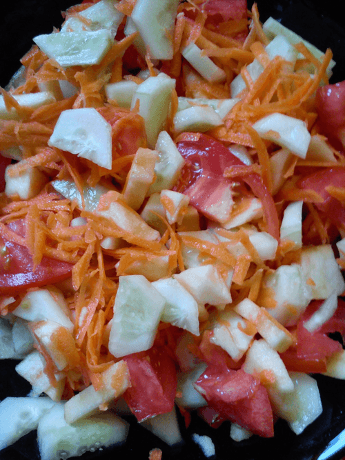 Chop cucumbers and tomatoes, mix the ingredients, add vinegar.