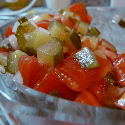This simple yet surprisingly delicious salad reflects Thai cuisine, known for its harmony of sweet, sour, and salty flavors. The combination of juicy tomatoes, crunchy pickled cucumbers, and aromatic onions creates a vibrant contrast that is both refreshing and tangy. Thais love to use pickled vegetables to enhance flavor depth, and this salad is a great example of that. It works perfectly as a side dish to main courses or as a light standalone dish that awakens the appetite and refreshes on a hot day. Its simplicity in preparation makes it accessible to everyone while its rich flavor keeps you coming back for more.