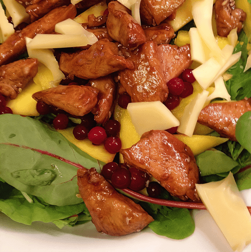 Turkey fried in teriyaki sauce is complemented by sweet mango and lingonberry sourness. For the salad, we recommend using the Tango Mix "Belaya Dacha" salad mix