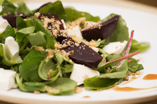This salad is an exquisite combination of sweet roasted beets, delicate feta cheese, and tangy pomegranate narsharab sauce. Its origins are rooted in European gastronomy, where the harmony of flavors and textures is valued. Roasted until caramelized, the beet gains softness and a rich earthy flavor that beautifully complements the salty feta cheese. Swiss chard, arugula, and root leaves add freshness, while crushed walnuts provide a pleasant crunch. The dressing made from narsharab, olive oil, and wine vinegar completes the ensemble with fruity and slightly tart notes. This salad is perfect as a standalone dish or as an elegant appetizer to a main meal, highlighting the natural beauty and richness of its ingredients.