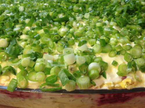 Sprinkle the prepared salad with finely chopped green onions and chill.