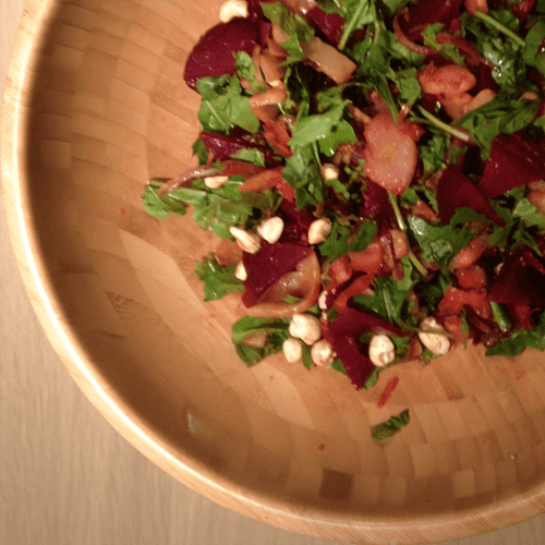 Warm salad with baked beetroot