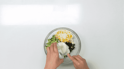 Mix all prepared ingredients and salt the salad to taste.