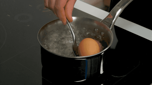 Boil the eggs in boiling water for 10 minutes. Then rinse them with cold water.