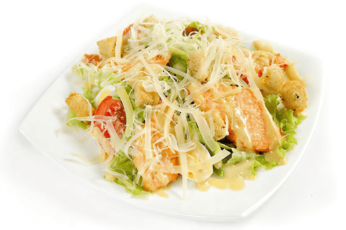 Caesar salad with salmon is an exquisite and delicate version of the classic American dish. Its history dates back to 1924 when chef Caesar Cardini created the original recipe in Tijuana. In this version, juicy salmon fillet adds a unique touch, becoming tender and aromatic after light frying. Crispy croutons soaked in garlic oil add texture, while iceberg lettuce refreshes the taste. Quail eggs and sweet cherry tomatoes harmoniously complement the composition, and a tangy sauce made from mayonnaise, lemon juice, and mustard gives the dish special depth. This dish is perfect for both festive dinners and light lunches, offering vibrant flavor sensations with every bite.