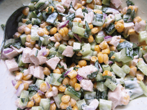 Chicken salad with cucumber and corn
