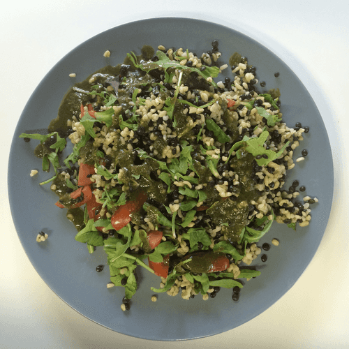 Green salad with bulgur, beluga lentils, and mint dressing is a harmony of freshness, textures, and rich aromas. This recipe is inspired by Turkish culinary traditions where grains, legumes, and herbs create incredible flavor combinations. Bulgur adds a nutty tenderness to the dish while beluga lentils provide a velvety density. The mint sauce with narsharab and lemon juice refreshes and highlights subtle Eastern notes. Pomegranate seeds add bright bursts of sweetness and slight acidity perfectly complementing the salad's structure. This dish is not only healthy but also versatile – it works well as a light dinner, side dish or a base for culinary experiments. It can be served in both classic form or as a shaker salad adding playfulness and interactivity to the cooking process.