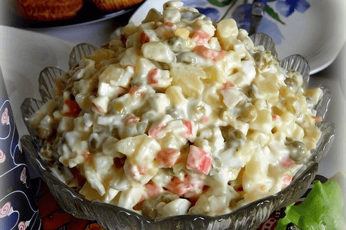 Crab stick salad with potatoes and carrots is a delicate and nutritious dish that combines the simplicity of classic salads with a hint of seafood exoticism. Crab sticks add a gourmet flavor, potatoes provide softness, and carrots bring a sweet freshness. The origins of such salads trace back to home cooking, where housewives sought successful combinations of available ingredients. This salad is perfect for both everyday dinners and festive gatherings. Its ease of preparation makes it an excellent choice, while the mayonnaise dressing adds richness. The combination of vegetables and seafood makes it versatile – it can serve as a standalone dish or be part of a more complex gastronomic ensemble. Delicate, juicy, with a pleasant texture – this salad will always find its fans.