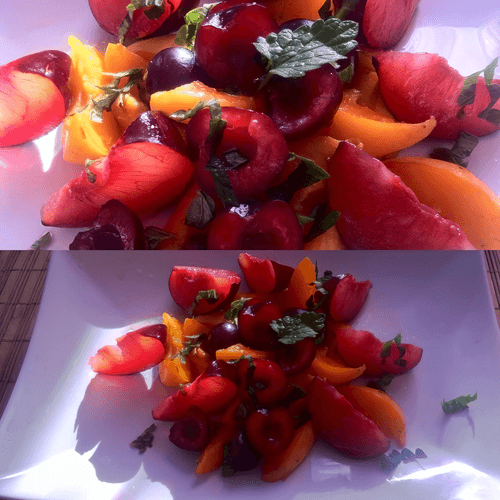 This light salad with apricot, cherry, and plum is a true symphony of summer flavors inspired by Italian cuisine. The combination of sweet cherries, juicy apricots, and rich plums dressed in a fragrant honey-lemon sauce offers exquisite pleasure. Fresh mint adds a touch of zest and refreshes the flavor palette. This salad is perfect for a light breakfast, an elegant dessert, or a refreshing snack on a hot day. Italy is renowned for its love of fresh and natural ingredients, and this recipe is a wonderful example of that. It highlights the natural sweetness of the fruits without unnecessary additives, and its simplicity makes it accessible to everyone. Enjoy this vibrant, sunny dish and immerse yourself in the Mediterranean flavor!
