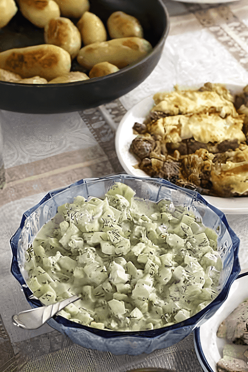 Cucumber salad with sour cream and garlic is a classic dish of Russian cuisine that combines simplicity of preparation with a rich and refreshing taste. The history of this salad is rooted in the traditions of home cooking, where fresh seasonal vegetables were the basis of the diet. Crunchy cucumbers, aromatic garlic, and delicate sour cream create a harmony of textures and flavors, while dill adds a fresh herbal note to the dish. This salad is perfect as a light accompaniment to meat and fish dishes or as an independent snack, especially on hot summer days. The simplicity of its ingredients makes it accessible and beloved among many generations.