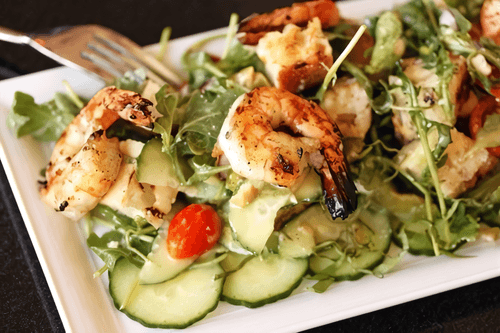 Diet salad with shrimps and avocado