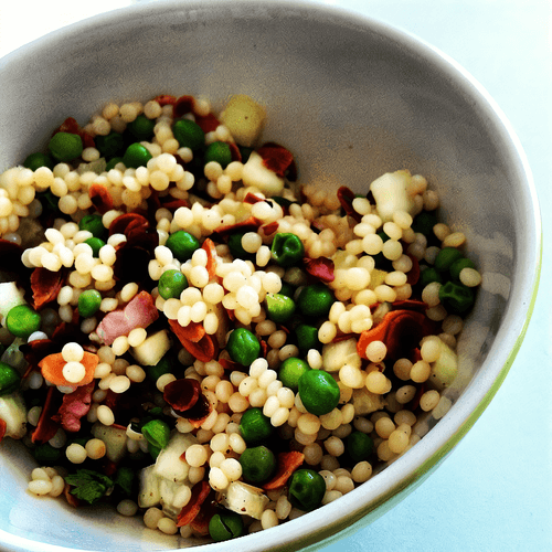Ptitim salad with bacon, green peas and lemon