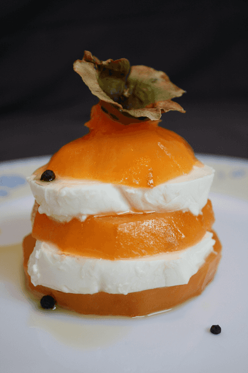 Persimmon with mozzarella is an exquisite combination of sweet, juicy persimmon and delicate, creamy cheese, highlighted by aromatic olive oil and a hint of black pepper spice. This recipe reflects the Italian culinary philosophy: simplicity of ingredients, harmony of flavors, and attention to product quality. The idea of pairing fruits with cheese may have originated in Tuscan or Sicilian homes where local chefs love to experiment with contrasts of sweet and salty. The dish is perfect as an appetizer or light snack, and its freshness makes it an excellent choice for summer evenings or festive gatherings. This flavor duo captivates with its elegance and surprise, offering delight in every bite.