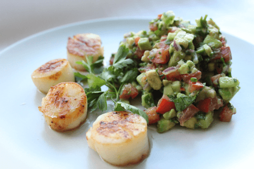 Scallops with avocado tartare