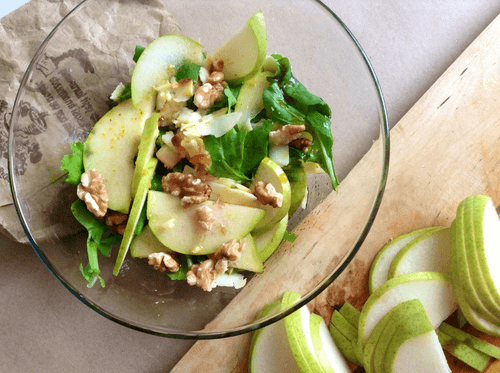 Pear and smoked cheese salad