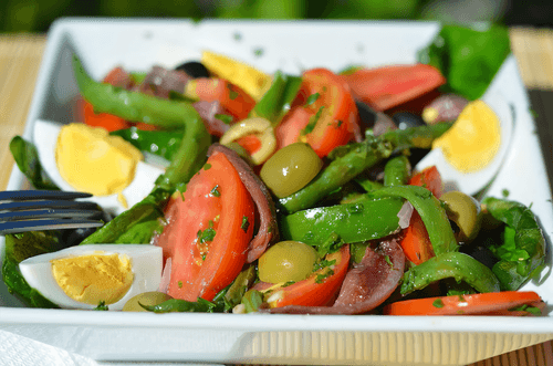 Salad Niçoise is a mixed salad made from various vegetables, tuna or anchovies, or both. It is commonly associated with the French Riviera and is named after the city of Nice. There are many variations of this salad. You can improvise with it endlessly , adjusting it to your personal taste.
